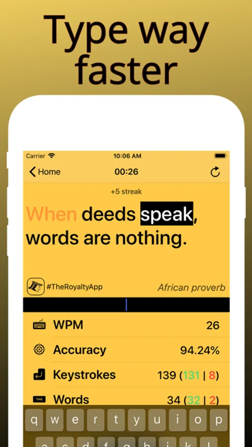 Uncover your iPhone typing prowess with Royalty, the entertaining app designed to gauge your skills, from rookie to virtuoso.
