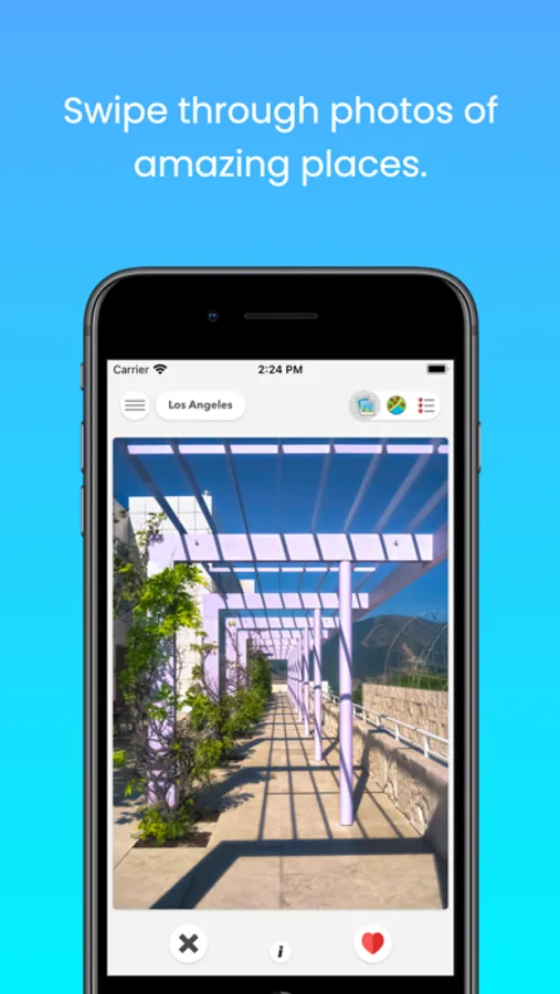Do you love to see photos of amazing places on social media? With Honua you swipe through photos of locations all around the world. Your favorites are saved on a map for you to visit anytime. Whether you need inspiration what to do right now nearby or to prepare for your next big trip.