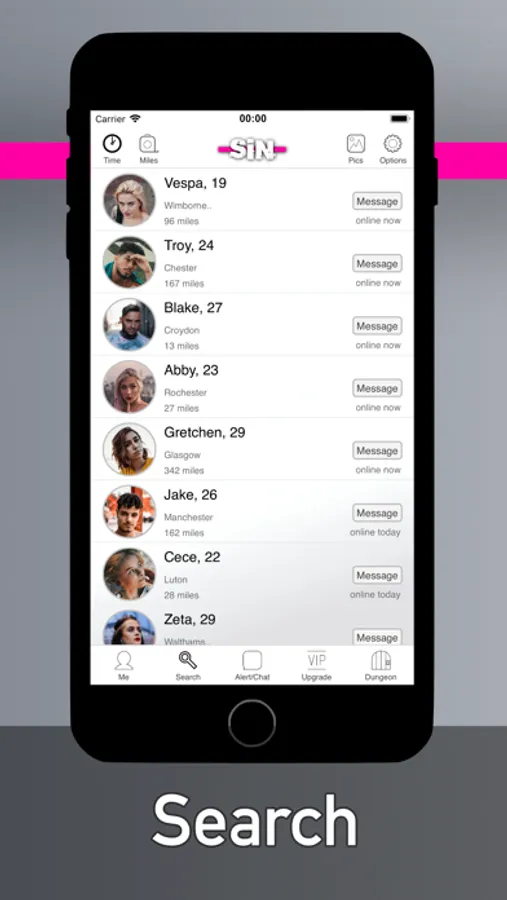 The SiN app is not swipe-based nor does it have any silly gamification that gets in the way of meeting people, life is too short for all that rubbish. If you see someone you like, send them a HOT alert or send them a private and direct message.