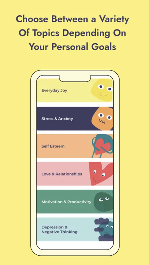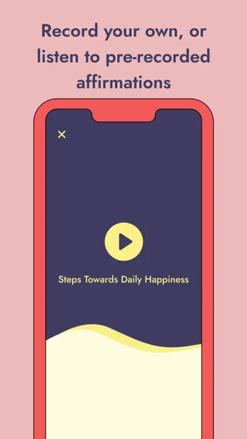 Hundreds of pre-recorded affirmations divided into playlists and categories such as Stress, Daily Happiness, Motivation and many more!