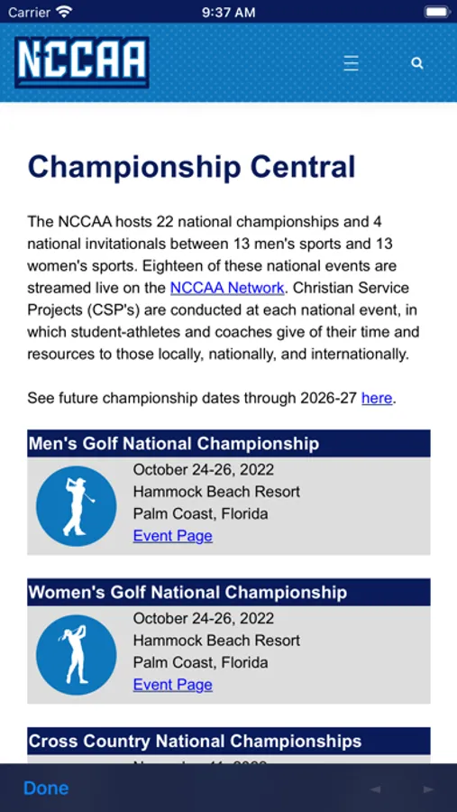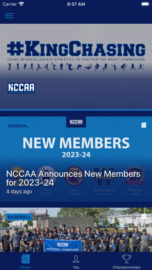 The official National Christian College Athletic Association (NCCAA) app offers the latest news on NCCAA member schools, sports, and national championships.