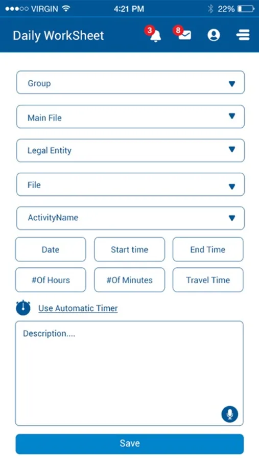 Gazayerli Group Egypt unique Mobile Time Management System allowing professional entities to record, enter and manage their billable hours based on client, project and activity.