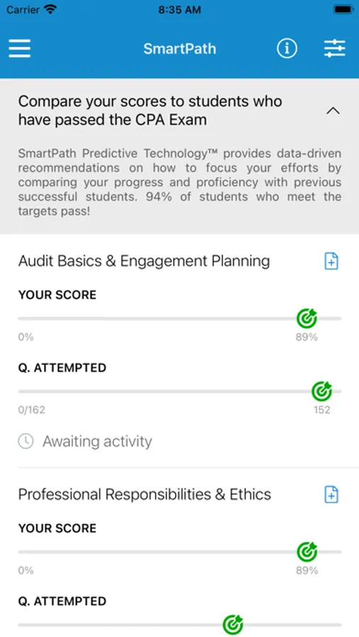 The Roger CPA Review app - powered by UWorld - provides full access to your CPA Exam prep materials on your iOS devices. Review and learn using practice tests from MCQs and TBSs that mirror the CPA Exam, master difficult concepts with the highest-quality answer explanations and helpful visual aids, learn from the profession’s most engaging and motivating lectures, and track your performance with our revolutionary SmartPath Predictive Technology™.