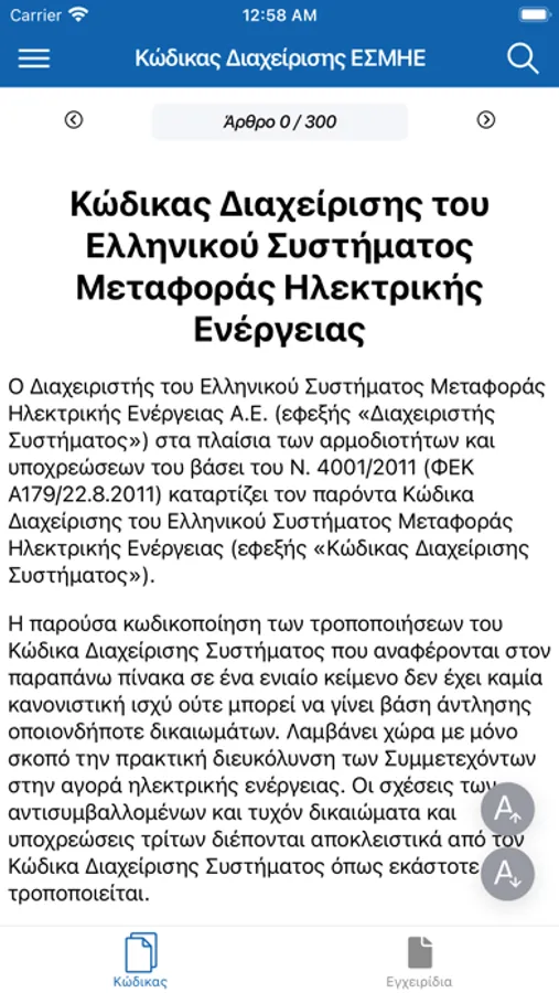 - Moving to a specific article can be performed either by writing the number of the article or by using the left/right arrows on the top of the screen.