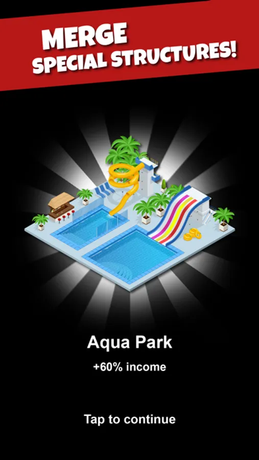 Start with a small city and build your first houses. Merge houses into mansions and merge mansions into skyscrapers. Buy upgrades and merge special structures. Attract citizens and collect taxes, even while you're offline.