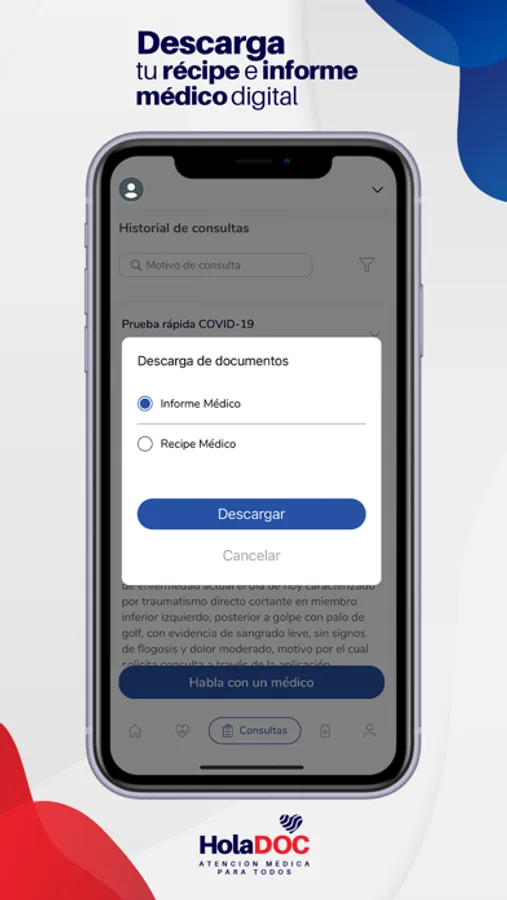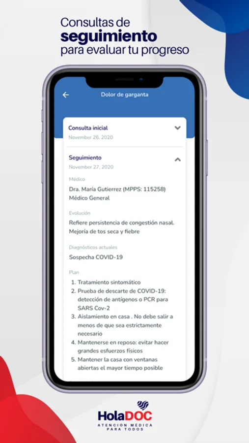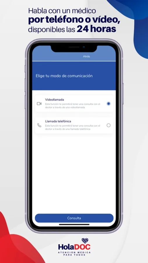 HolaDOC te conecta en minutos con un médico certificado, desde la comodidad de tu casa u oficina, a través de una video-consulta en vivo o llamada telefónica.