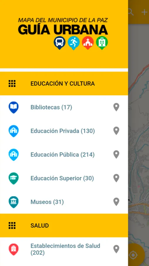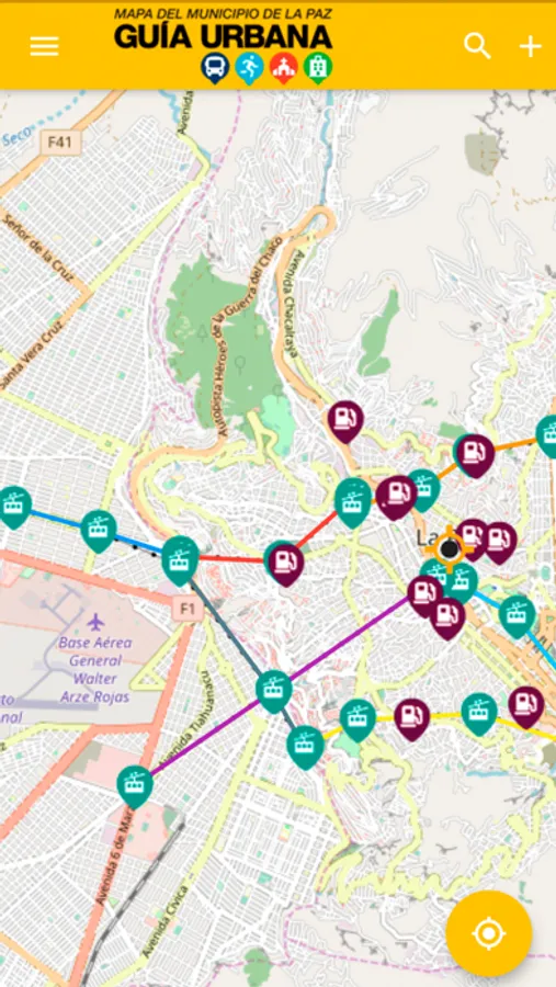 La Guía Urbana de La Paz, constituye una herramienta útil y valiosa para facilitar al vecino y al visitante la orientación y ubicación de las calles, plazas, áreas verdes y principales hitos urbanos, así como las rutas del transporte masivo La Paz Bus, las paradas, rutas del Teleférico, sus estaciones y otros puntos de similar importancia.