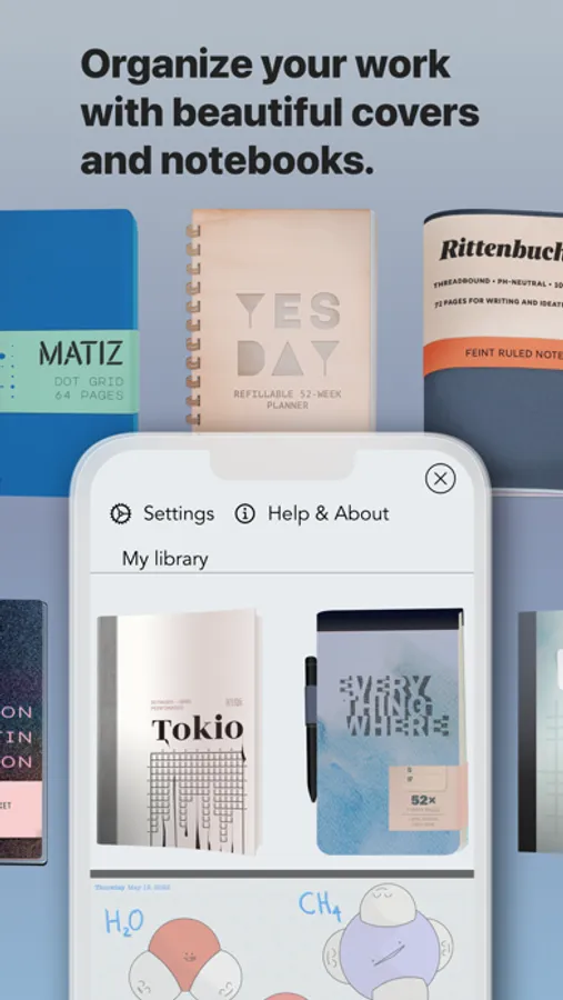Build your perfect notebook from more than four hundred types of stationery. Then, use the best digital inking technology to pour your ideas, notes, plans, and dreams into it.