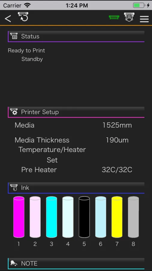 "MSM Mobile" enables to check the status of MUTOH printer connected to a local-area network,