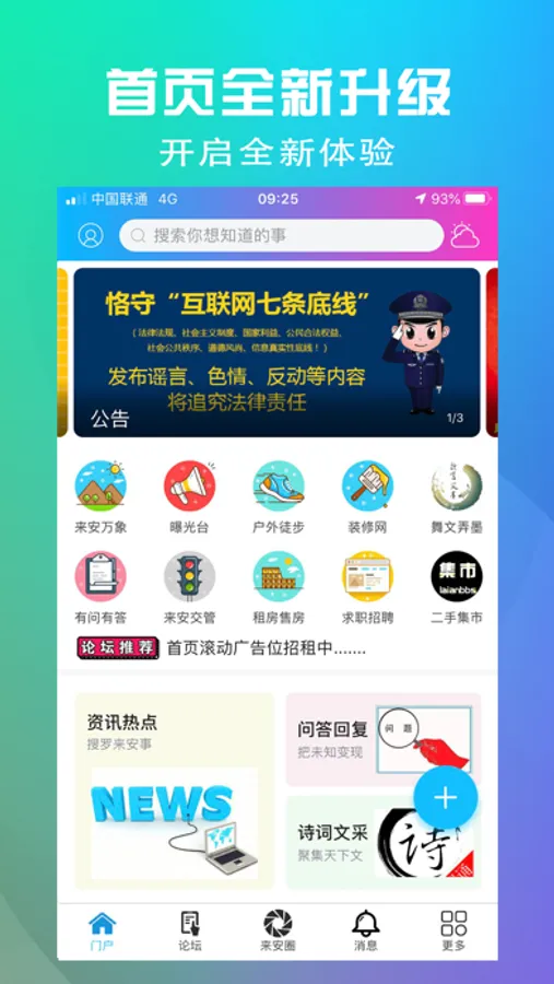 来安论坛客户端致力成为来安本地人际交流一体化服务的大型互动平台,努力努力打造来安最强综合社区门户。