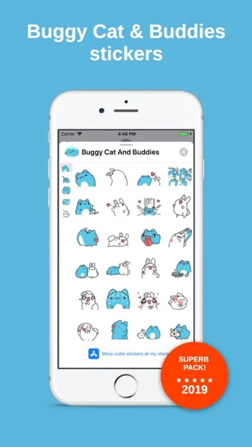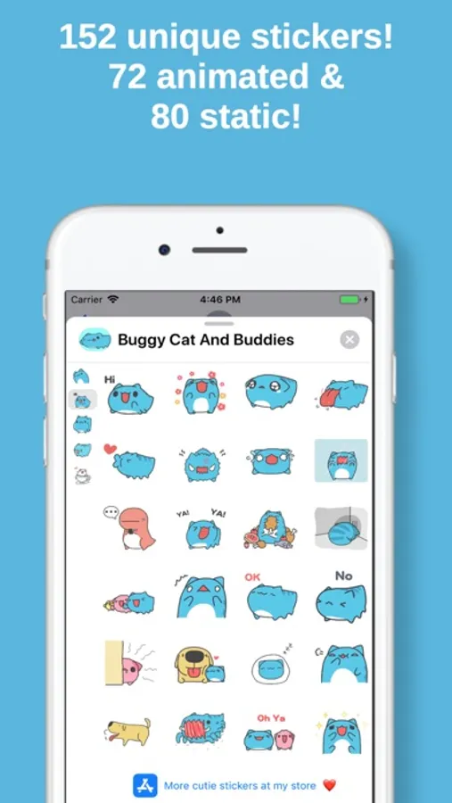 ● Superb set of 152 stickers Buggy Cat and Buddies, 72 animated and 80 static!
