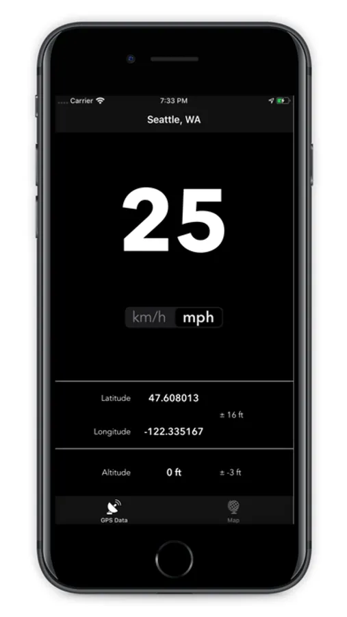 Simple, ad free GPS speedometer application that displays the speed in km/h or in mph.