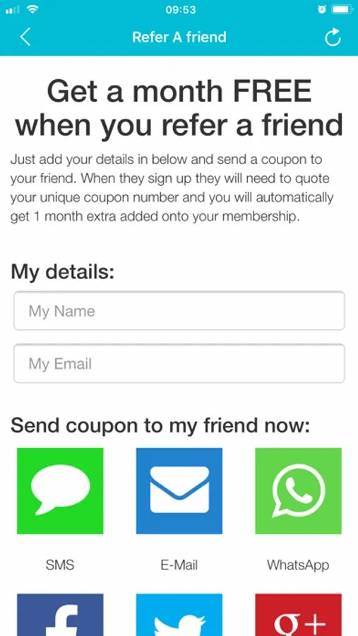 Use the app to refer a friend to Oldham Active and get 1 months membership FREE.