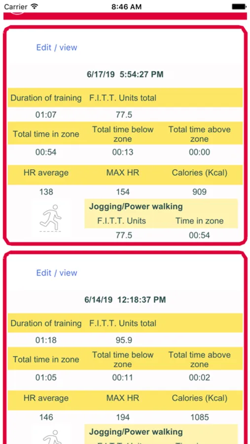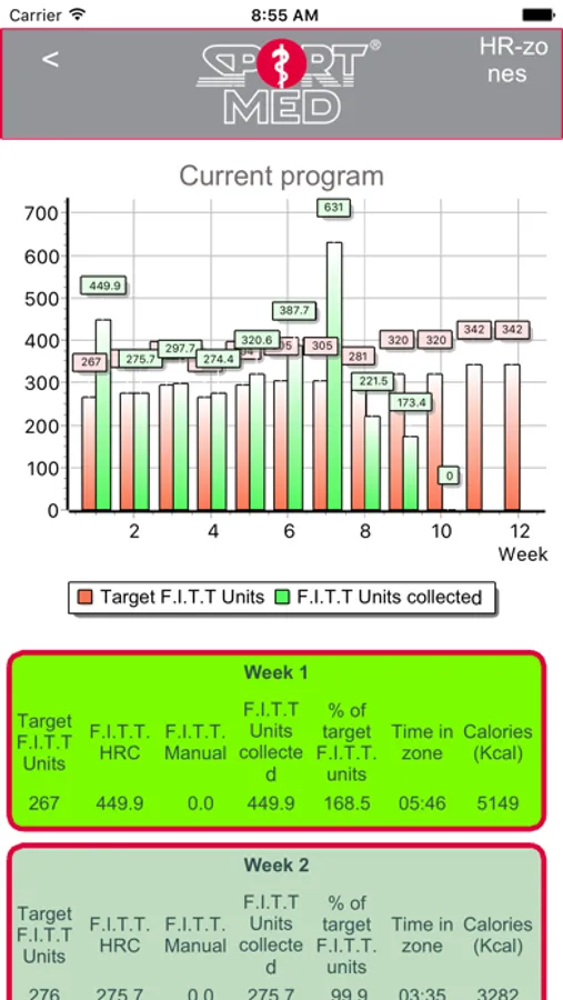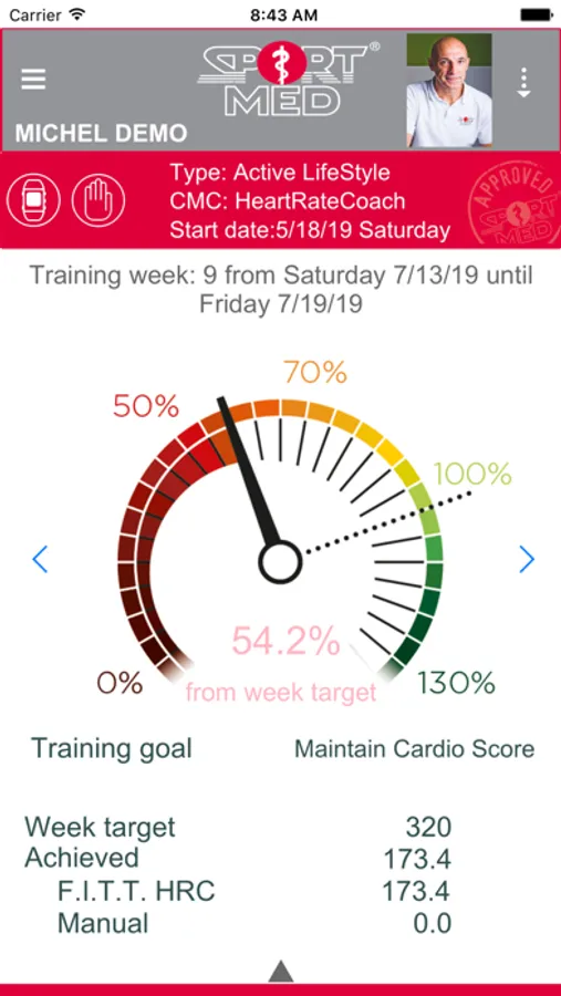 The cardio program that was put together by your SportMed Cardio-trainer or coach or your Fitness Essentials Cardio-instructor is uploaded to the app so that you always have an overview of the objectives and status per week. All your training efforts are presented in detail.