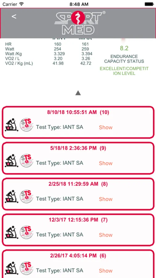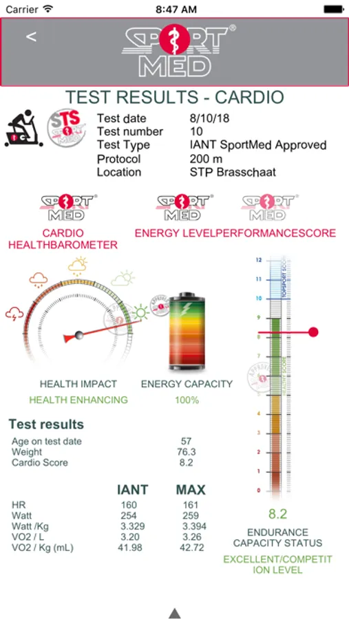 In the app you always have a complete history of your former stress tests available. You will also find other test results of measurements that you have completed with your SportMed Cardio-trainer/ oach or Fitness Essentials Cardio-instructor.