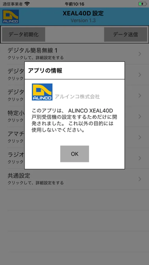 免許局戸別受信機XEAL40Dのチャンネル登録や機能設定ができます。接続ケーブルは不要、スマホから音でデータ転送するのですぐに使えます。アプリの説明書はアルインコ電子事業部のXEAL40D製品紹介ページでダウンロードできます。このアプリは、個人情報収集やスマホの別の機能へのアクセスは一切行いません。