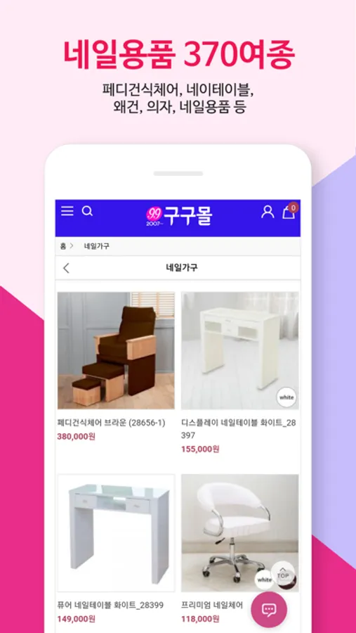 네일테이블 17종, 페디건식체어 2종, 왜건 48종, 의자 54종, 네일용품 244종