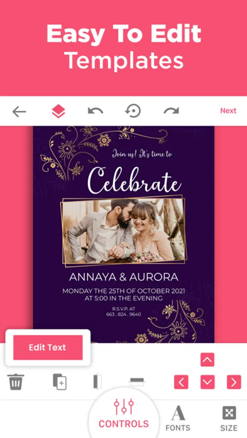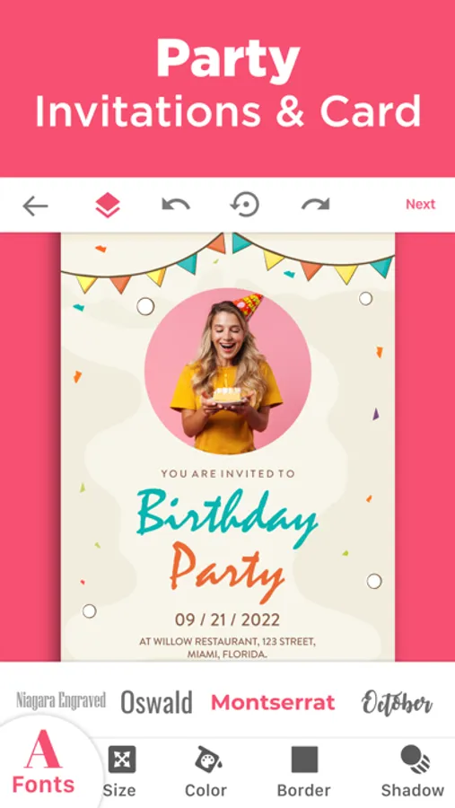 Add text to your selected images, creatively design the card and share it with the people you want to join your birthday bash. It also has the feature of flyer creator free to use in the invitation app. The Invitation maker - Design Invitations for Every Event comes with the following features:
