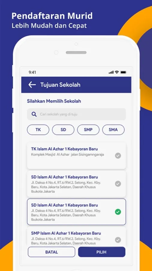 Salam Al-Azhar is the official platform presented by Yayasan Pesantren Islam Al Azhar to facilitate the activities of students. Salam Al-Azhar is designed to facilitate and accelerate the process of admission of new students (PPDB) & transfer, payment of tuition, academic information, and the best communication services that presented specifically for the Al Azhar community.