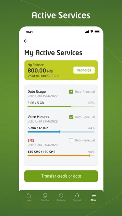 With “My Etisalat AFG” app, you can enjoy the following exceptional features: