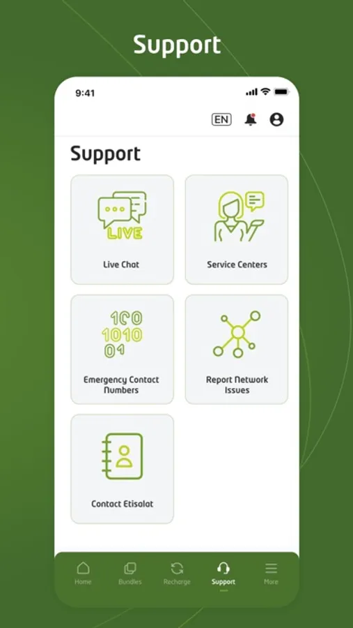 • Tap into the convenience of Etisalat services and get things done online with My Etisalat App. Download our app today and buy SIM cards online (prepaid and postpaid SIM cards), access premium internet deals, purchase minutes bundles & data bundles, activate SMS packages, build your bundles, check available balance, track data usage, and manage friends’ and family’s accounts, and much more.