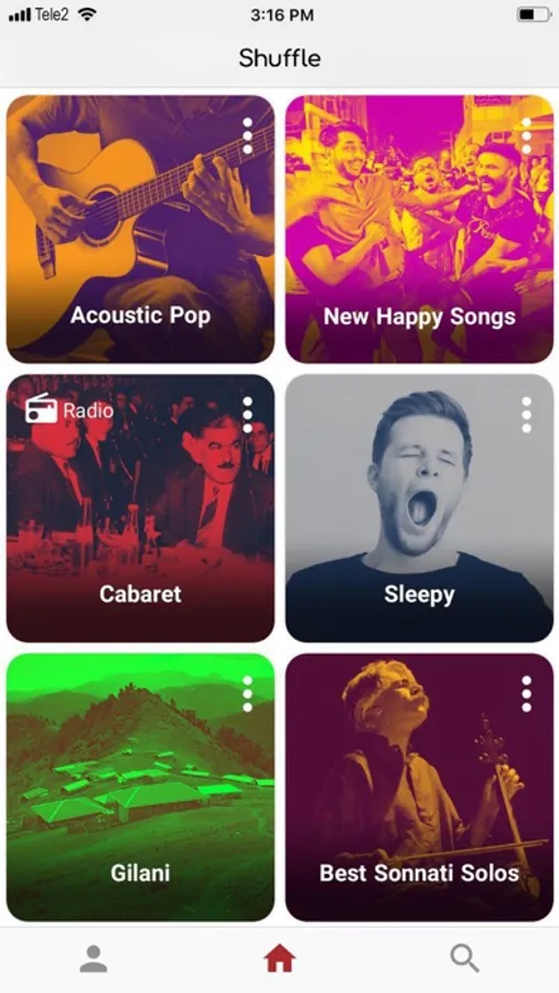 Also, you can find lots of categorizations in Shuffle. Viral tracks, new releases, trending, happy songs, instrumental music, dance music, gheri music, easy listening music, nostalgia, happy nostalgic songs, Arabic music, Afghan Music, Kurdish music, K-pop, Turkish music, Armenian music, Lori music, Gilaki Music, Radio Golha and Tajik music are just to name a few. All these channels are free to listen and you can even download and make them offline, for free.
