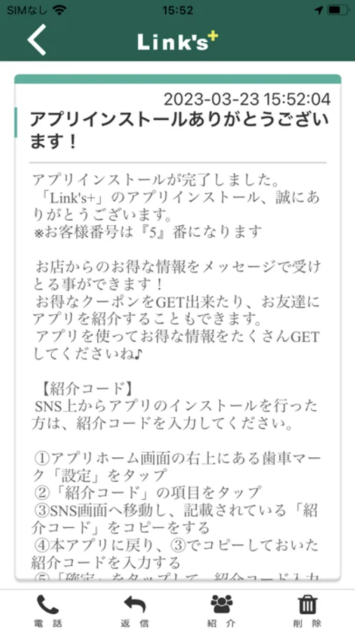 Links+のアプリをSNSを通じてお友達に紹介する事ができます。