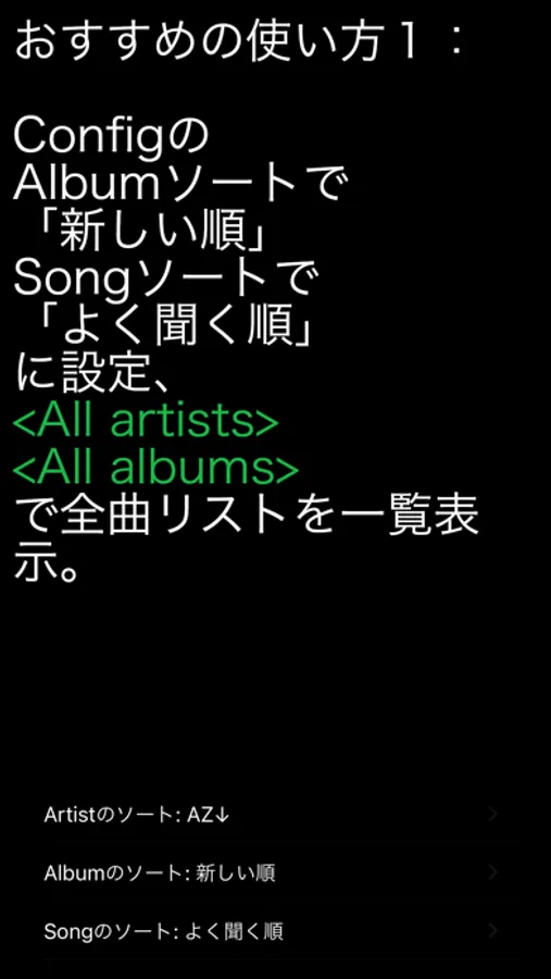 ・ソート機能(名前順 / 新しい,古い順 / よく聞く,あまり聞かない順 / トラック順)