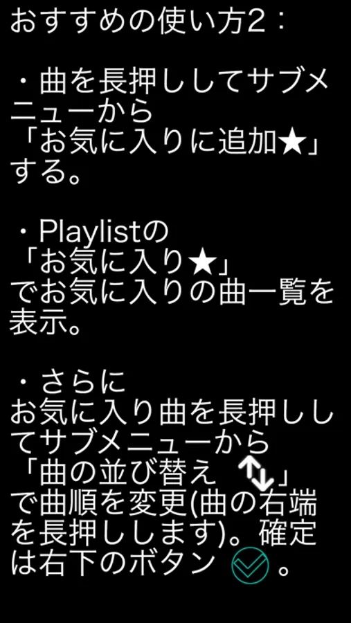 ・「お気に入り」プレイリスト作成(ブックマーク機能)、並び替え