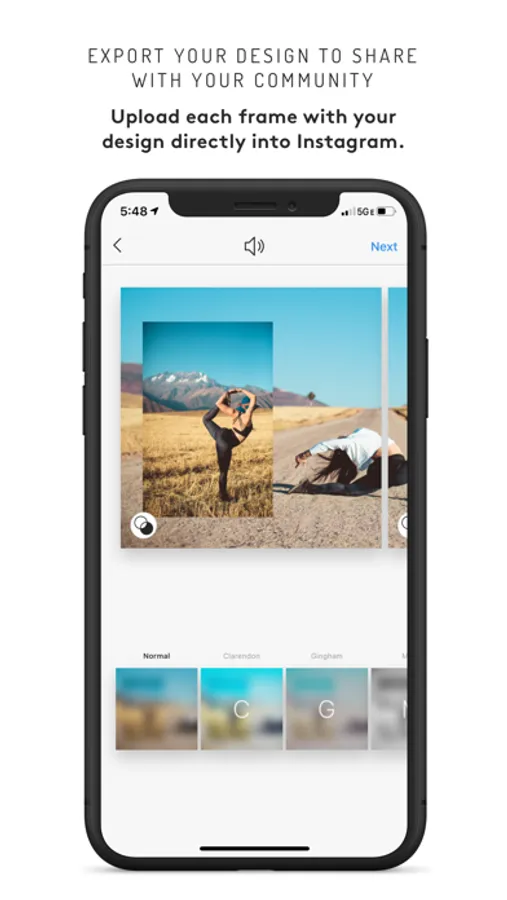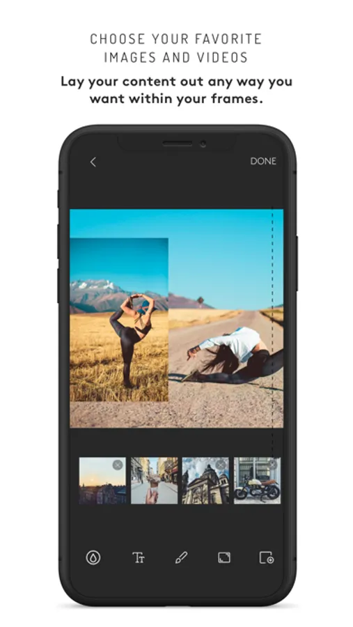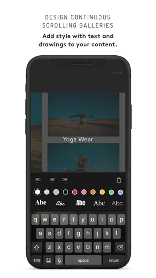Meet, Stagger. An app that allows you to design continuous carousel galleries using photos/videos, text and drawings to create your customized posts on your social feeds.
