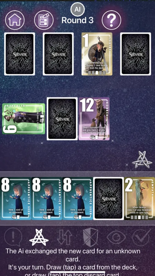 The Silver app lets you play 2-player games of Silver (the card game from Bezier Games, Inc.) against a computer AI. Learn the ins and outs of the game, and practice before taking on your friends!