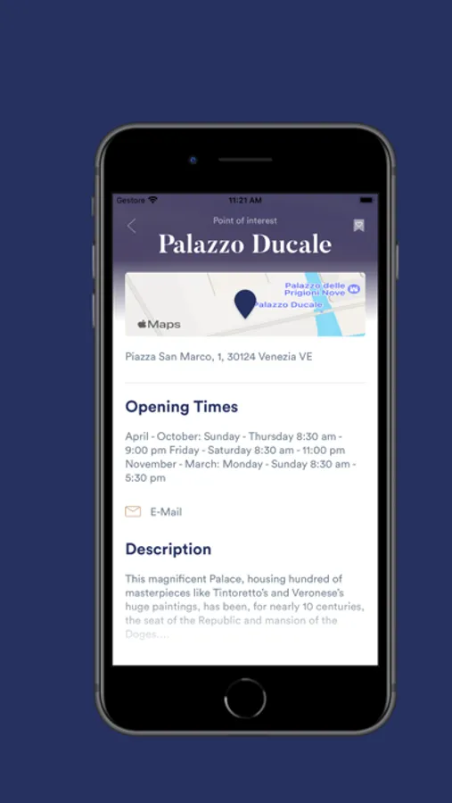 • Map: do not be scared to get lost in Venice’s labyrinthine alleys, geolocate yourself and use the map to move easily around the city. Travel off the beaten-path has never been so easy!