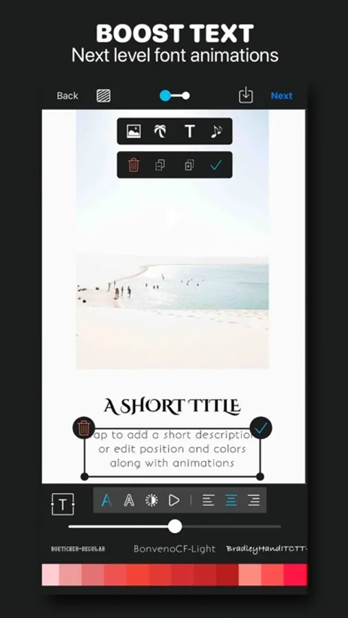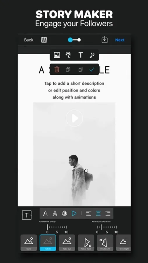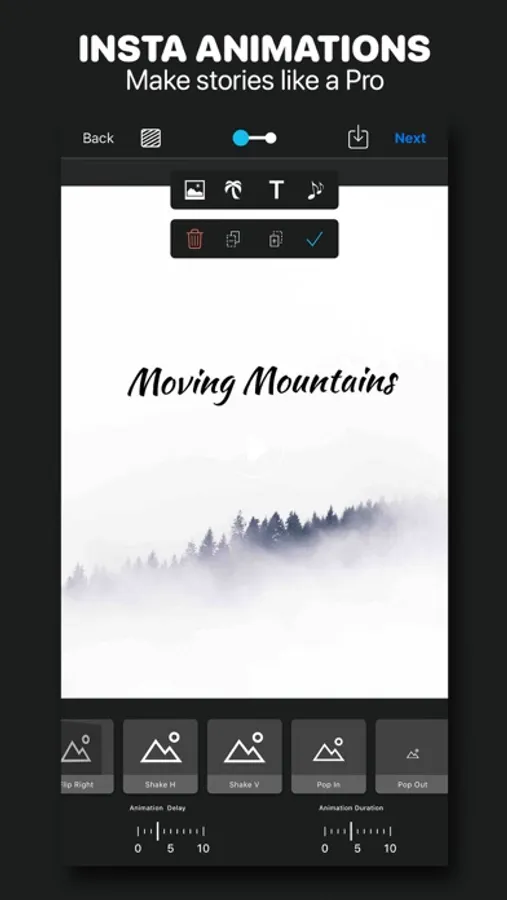 All your stories are already pre-set in the right size to be posted to Instagram, Facebook, or Snapchat.
