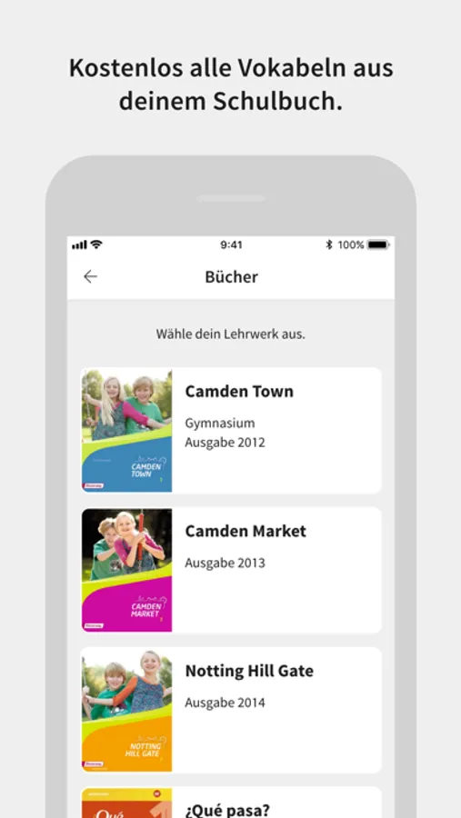 Im Westermann Vokabeltrainer findest du unter anderem die Vokabeln für die Bücher Camden Town Gymnasium, Camden Market, Notting Hill Gate und ¿Qué pasa?. Eine vollstände Liste aller Bücher sowie Fragen und Antworten zur App findest du unter https://www.westermann.de/landing/vokabeltrainer