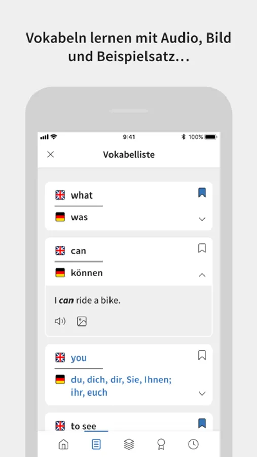 • Mit Ausspracheaudios, Bildern und Beispielsätzen.
