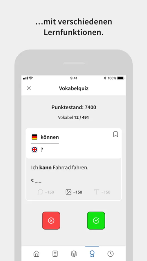 • Lerne den Wortschatz langfristig mit der Vokabelkartei.