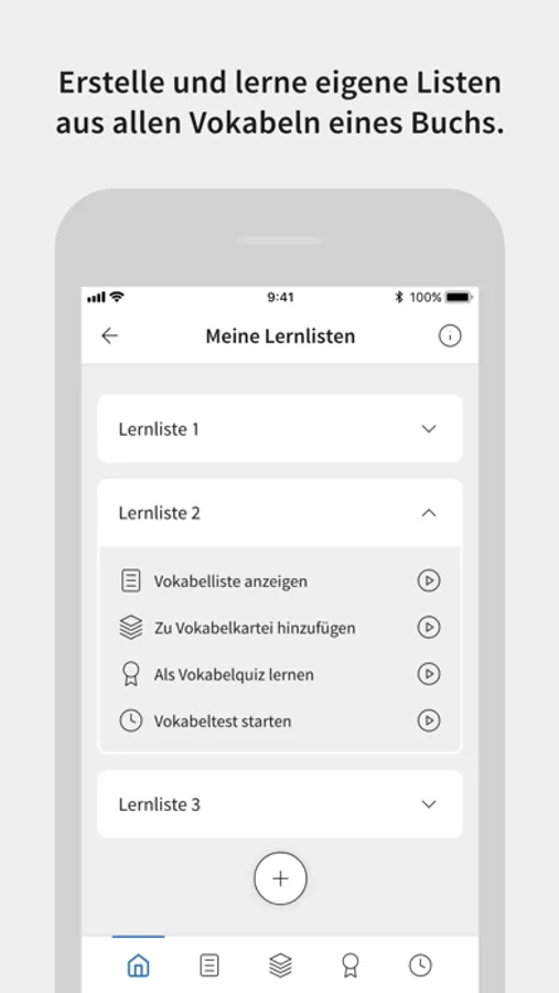 • Lege eigene Lernlisten mit den Vokabeln aus dem Buch an.