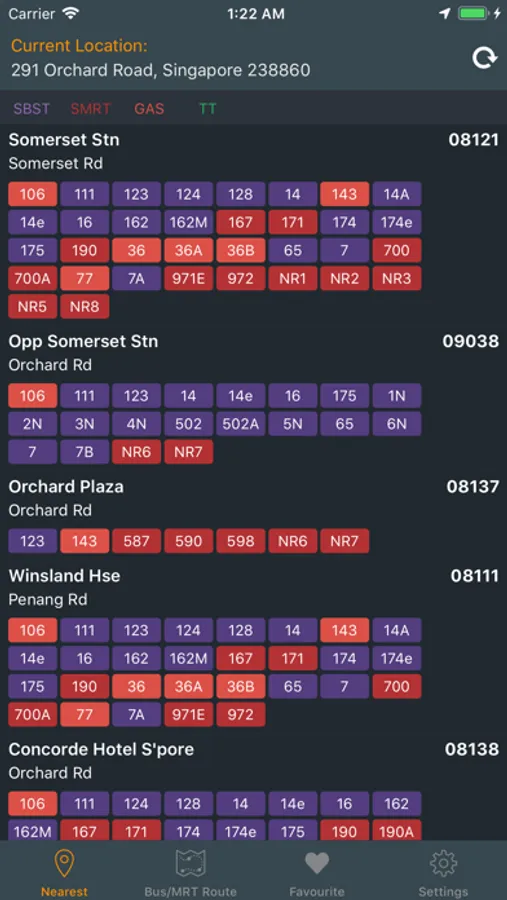 SG-BUS (Real Time) is a must-have App for daily commuters in Singapore to know real estimated bus arrival time from SMRT, SBS, TT and GAS. Also show nearest bus stops, allows to add favourite bus stops and show bus routes.