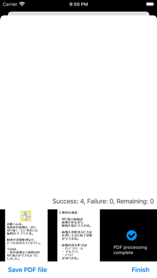 - Choose how you want to save: save to Camera Roll, create a new album, or create a PDF. PDFs can be saved to the iOS "Files" app.