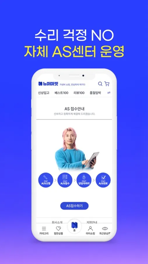 뉴퍼마켓은 3개월 무상, AS케어 1년 제공으로 사후서비스 보증