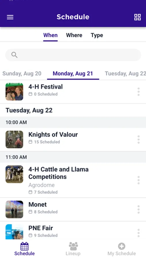 PNE Events Screenshots