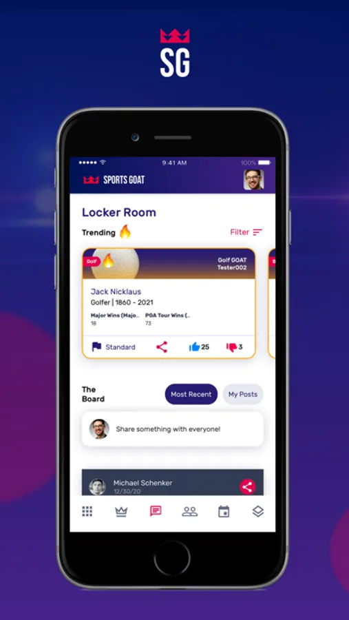 The world’s only sports-focused social media platform. Sports Goat (SG) puts stats from across the NFL, NBA, MLB, PGA, etc. at your fingertips. No more jumping all over the place to find out who your team drafted last year or who pitched the last perfect game. The Almanac and Raw Data deliver millions of statistics all in one convenient spot. Plus, we now deliver an in-app ranking system to allow you to debate your friends on any sports topic using real statistics. Is Tiger better than Jack? Does Eli belong in the Hall of Fame? Who is most deserving of an All Star nod? After that, you can hit the Locker Room to post your findings, share opinions, and start a debate. No need to get bombarded by annoying family pictures or politics on those other platforms. Make SG your go-to app for all things sports and you’ll have cool and fun numbers at your fingertips. Don’t keep it to yourself though, make sure you spread the word and get your family and friends hooked too. Sports Goat is the future of sports social media. Jump on today and start using the GOAT of all sports apps!