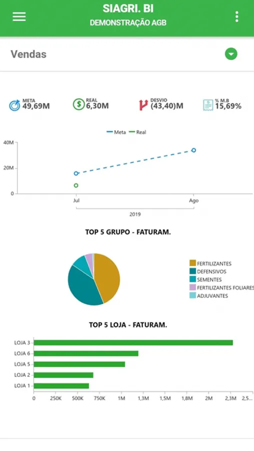 O SIAGRI. BI é um app de inteligência que extrai dados do ERP e os combinam para trazer insights para seu negócio através de dashboards dinâmicos, facilitando o processo de tomada de decisão. Por ele você poderá acompanhar os resultados de vendas, contas a pagar, inadimplência, estoque pago, entre outros.