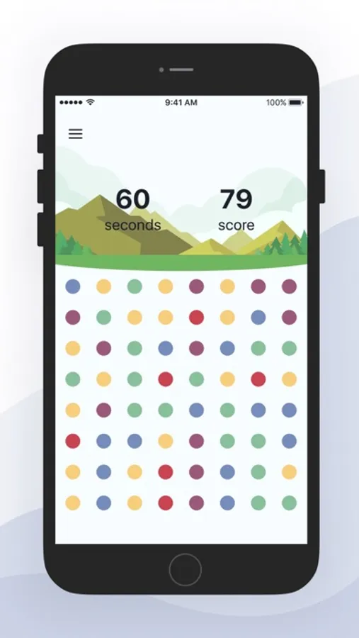 Connect two or more of the same colored bubbles. You can connect bubbles vertically or horizontally and the more bubbles connected, the more points earned. Bubbles are made to be an easy, lovely and pleasant way to warm-up your brain.