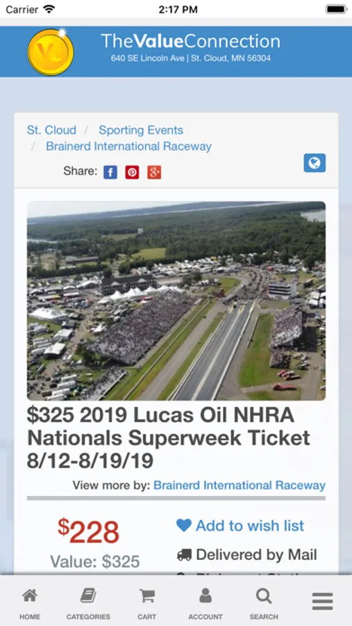 The Value Connection also offers amazing deals on tickets. “Ticket” deals can be purchased at Townsquare Media on Lincoln Avenue St. Cloud (and in some cases also at Cash Wise in Waite Park and Miller Auto/Marine). The available locations for a ticket deal will be noted in the description area of the deal’s information page. (“Ticket” deals can be mailed to you, however for tickets a small certified mail/shipping fee may apply).
