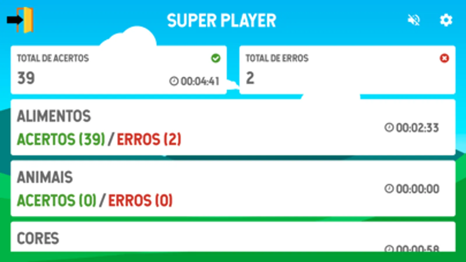 Dentro de cada categoria, as atividades são divididas em níveis de dificuldade. Cada fase só é desbloqueada de acordo com o desempenho da criança, seguindo o fluxo natural de aprendizagem.