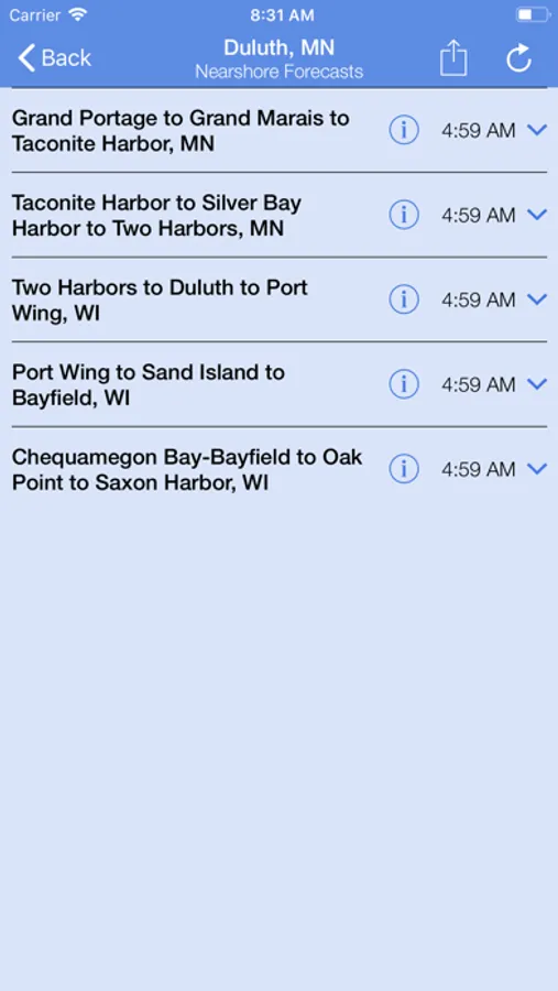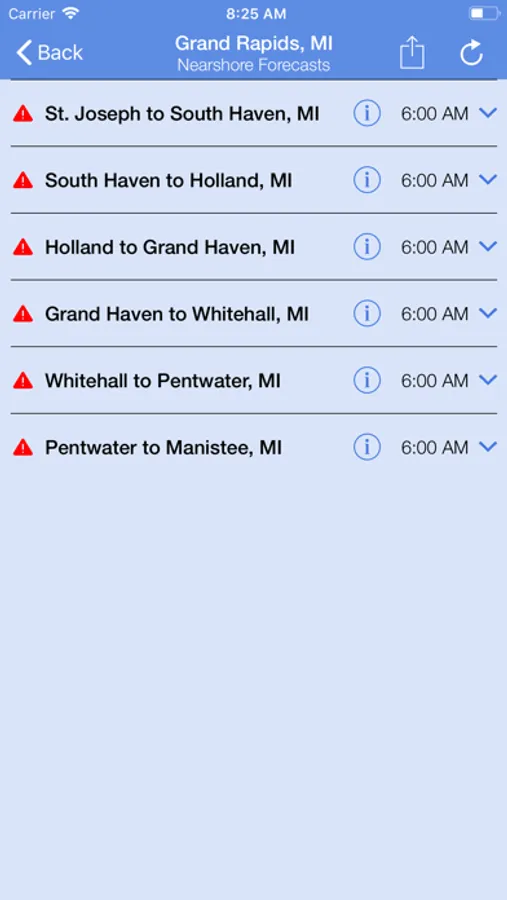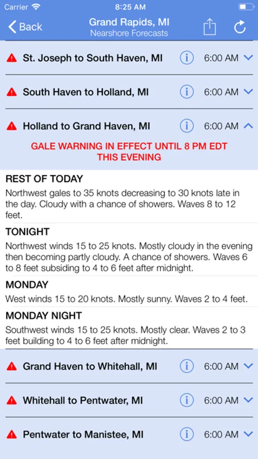 Nearshore app provides easy and straightforward access to Great Lakes nearshore forecasts on your iOS device.