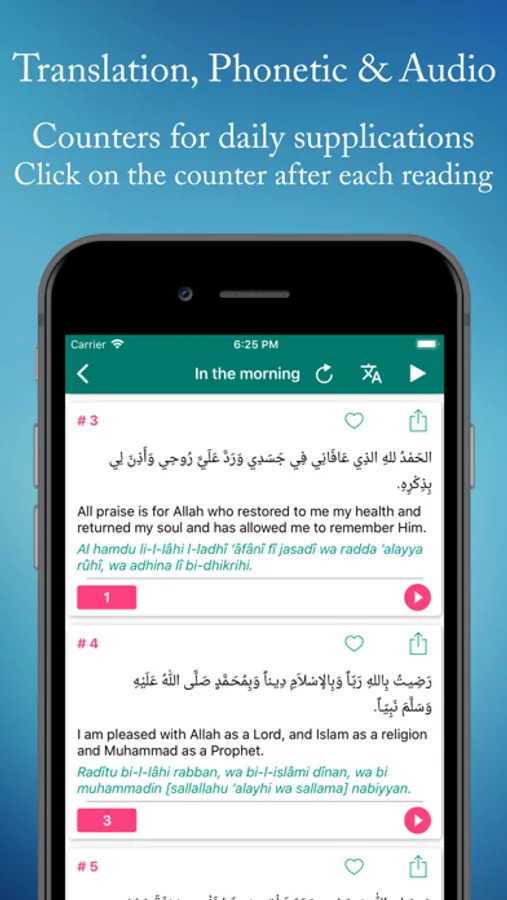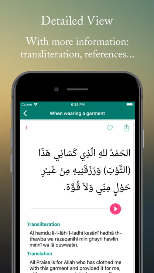 • The possibility to mark supplications as favorite so you can find them easily.