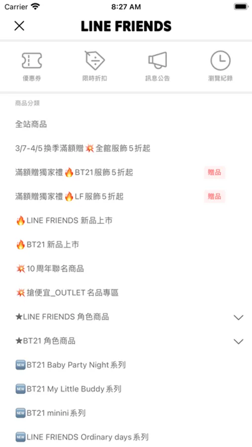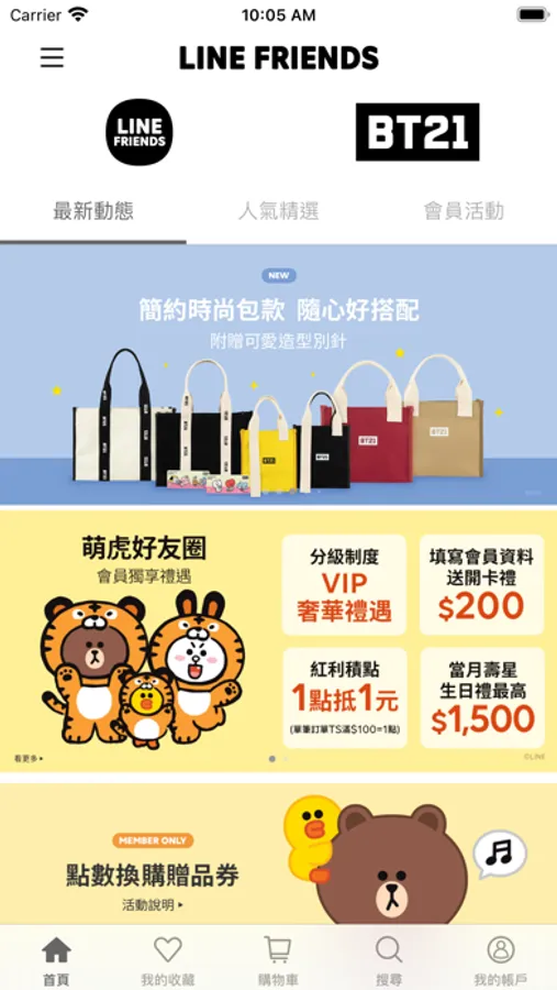 LINE FRIENDS以親近大眾、引發共嗚的模樣帶給使用者歡笑。率真自由奔放、超有魅力的LINE FRIENDS與BT21的角色們,走出行動裝置、更貼近大眾日常生活。LINE FRIENDS商城-多樣化商品,官方APP不定時推出限定優惠!APP會自動推播訊息,讓你不再錯過任何好康商品。