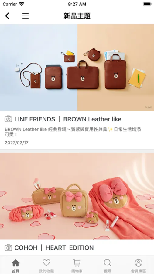 隨時點開LINE FRIENDS商城APP,掌握最新角色商品資訊。